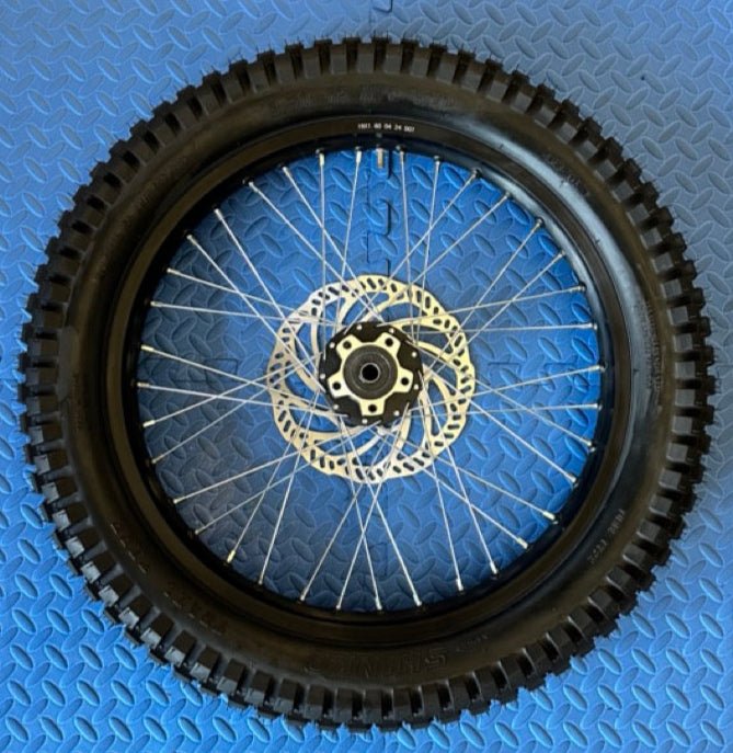 It's the perfect wheel set that makes it easier for you to swap your eMoto tires between dirt, trail, and street. Built for durability and performance, these electric dirtbike wheel sets are designed to simplify your switch between your riding styles and terrain. Sized at 19"/21" . At eBike Super Shop, we offer top-quality complete 19"/21" 241 Dual Sport wheel sets that will fit most any eMoto electric dirtbikes to help you get the most out of every ride. Shop now for electric moto bike wheel sets!