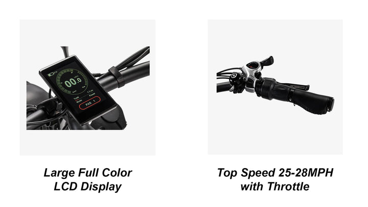 PAS Level, Current Speed, Max Speed, Odometer, Trip, Daylight and Night Model Selection, Eco, Normal, Power drive model selection Weight: 70 lbs with battery